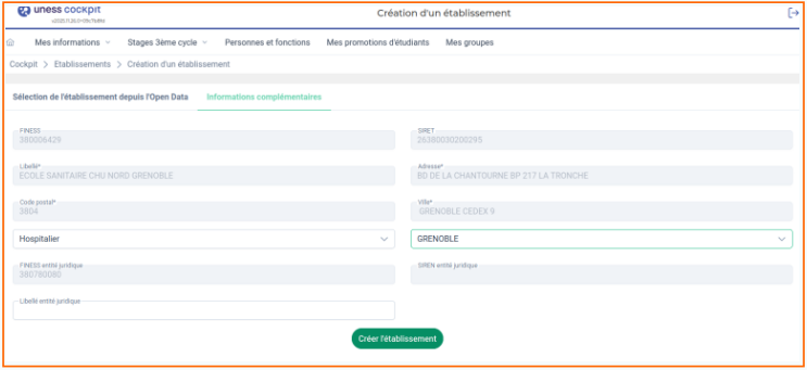 • L’utilisateur est redirigé vers le formulaire de création d’un établissement.