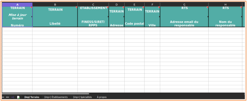 • Dans le cas d’une création de terrain, renseigner obligatoirement les colonnes B, C, et les champs du responsable terrain :