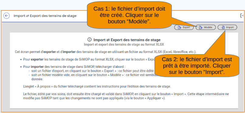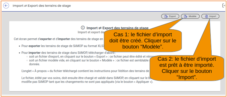 Depuis l’onglet “Terrains”, cliquer sur le bouton “Import / Export” :
