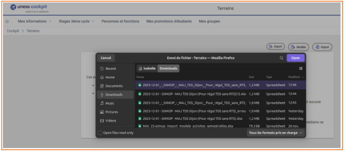 De fait, si le libellé d'un terrain de stage est affiché de manière erroné sur la page des postes, la correction doit s'effectuer depuis la page "Terrains" du Cockpit :