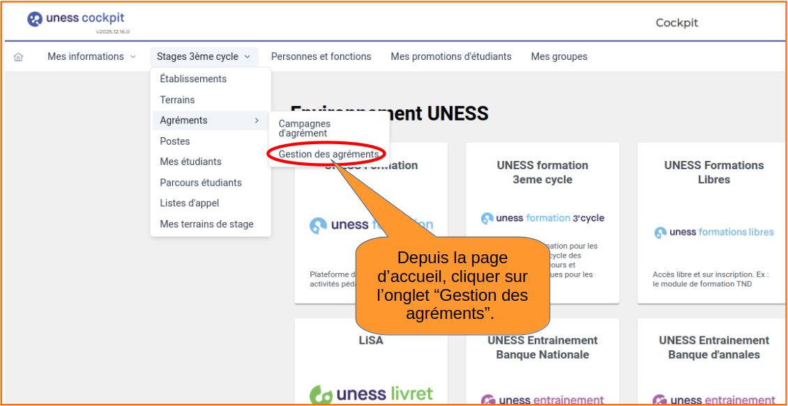 Depuis l’onglet « Établissements » du Cockpit (cockpit.uness.fr) :