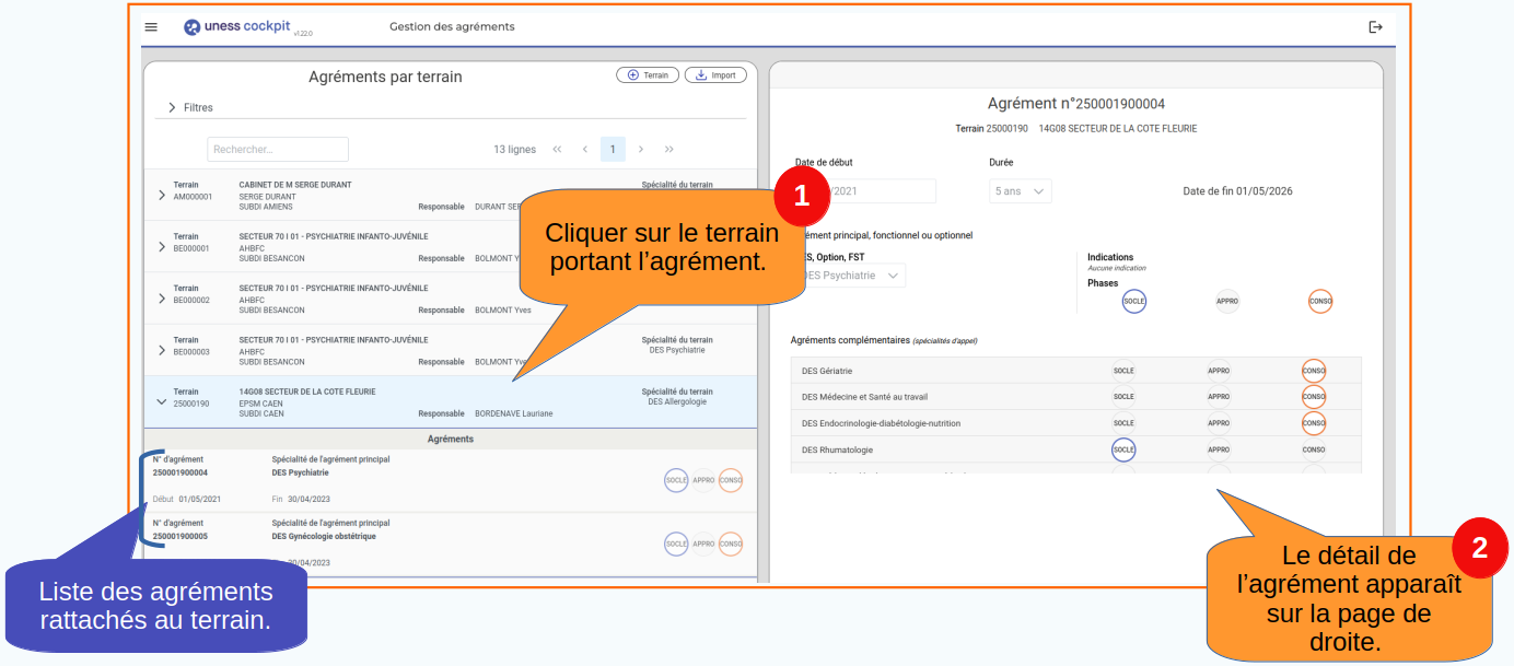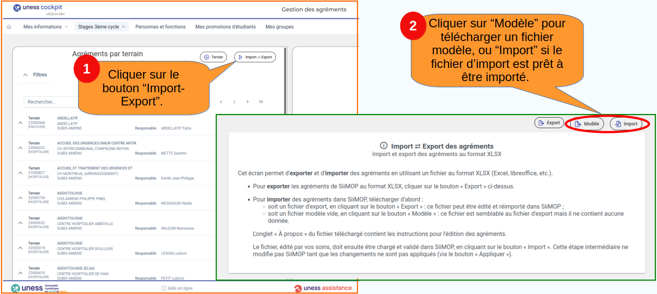 Pour cette première version du Cockpit, la création des agréments ne peut se faire que par fichier d'import.