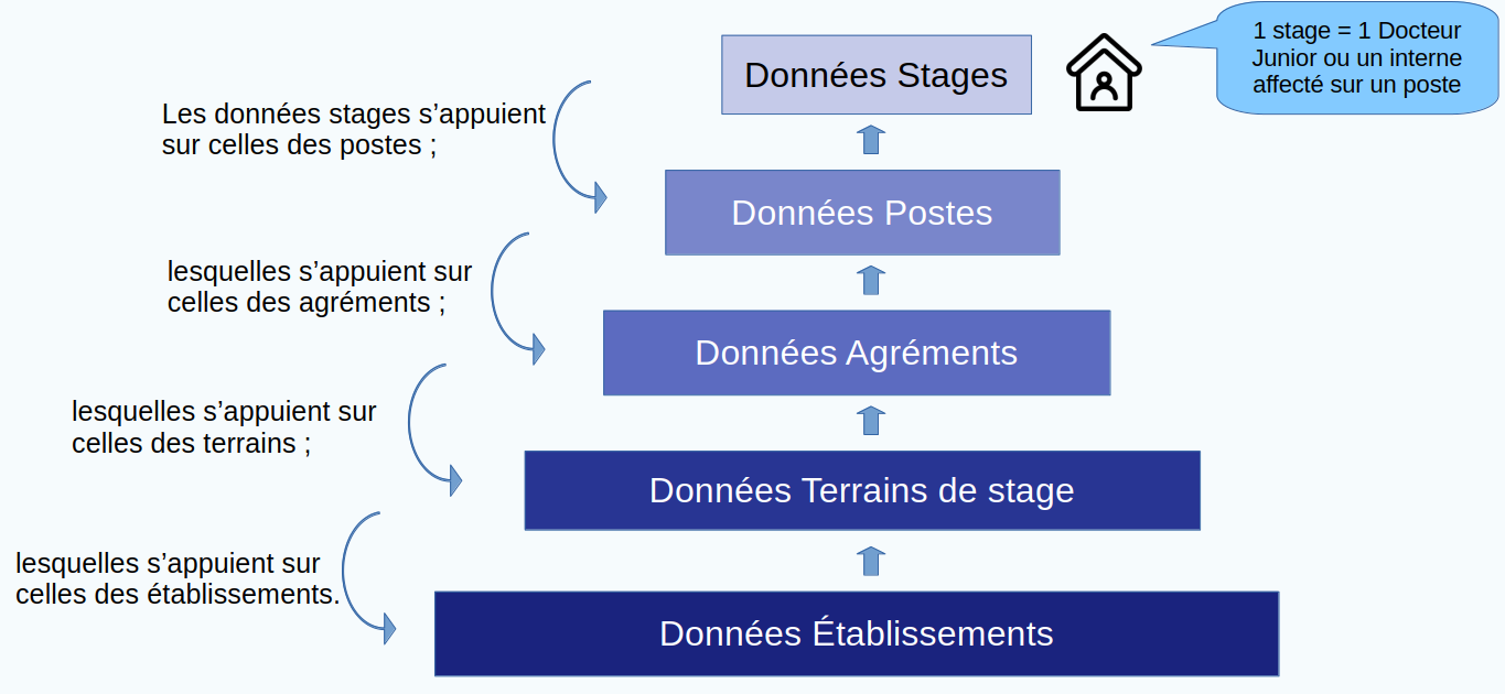 Les données liées aux terrains de stage suivent une organisation pyramidale :