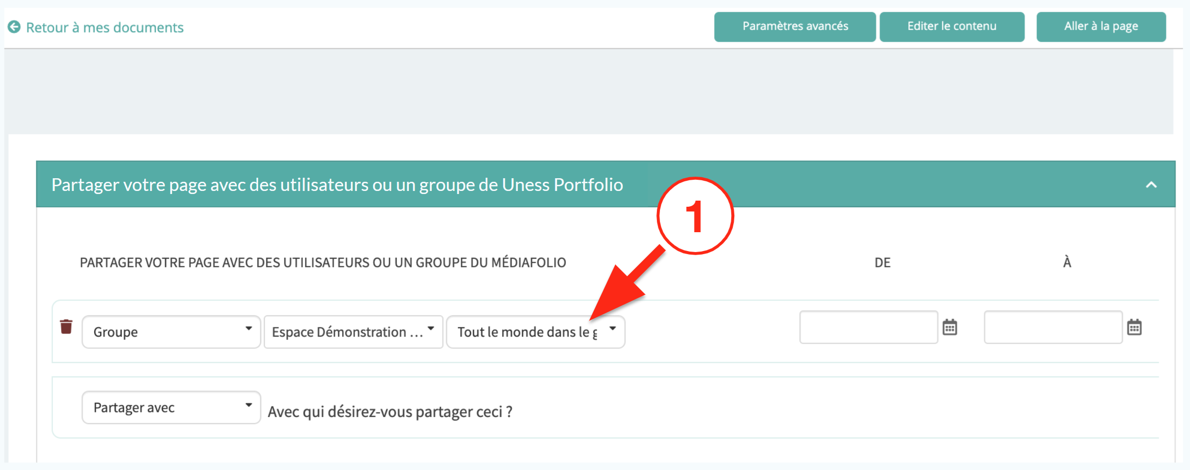 Il est possible de partager les pages de son portfolio avec un (ou plusieurs) utilisateurs ou avec un (ou plusieurs) groupes.