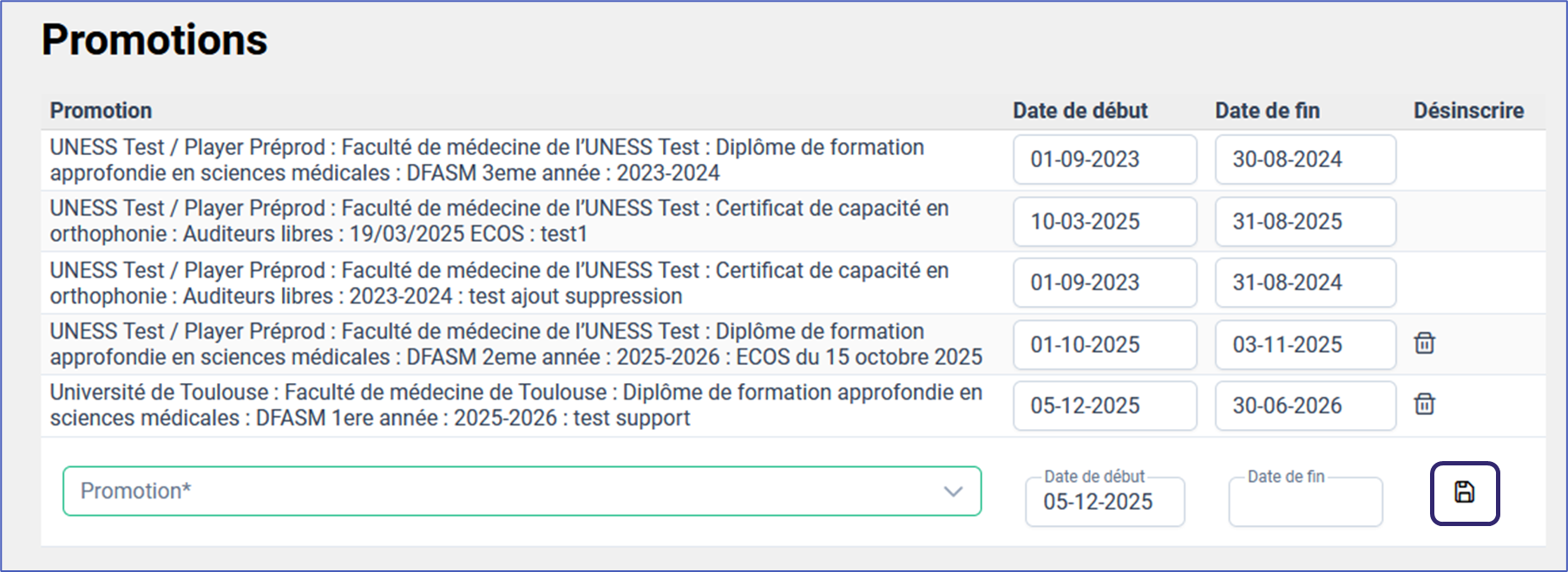 - Ajouter dans la promotion par la fiche utilisateur