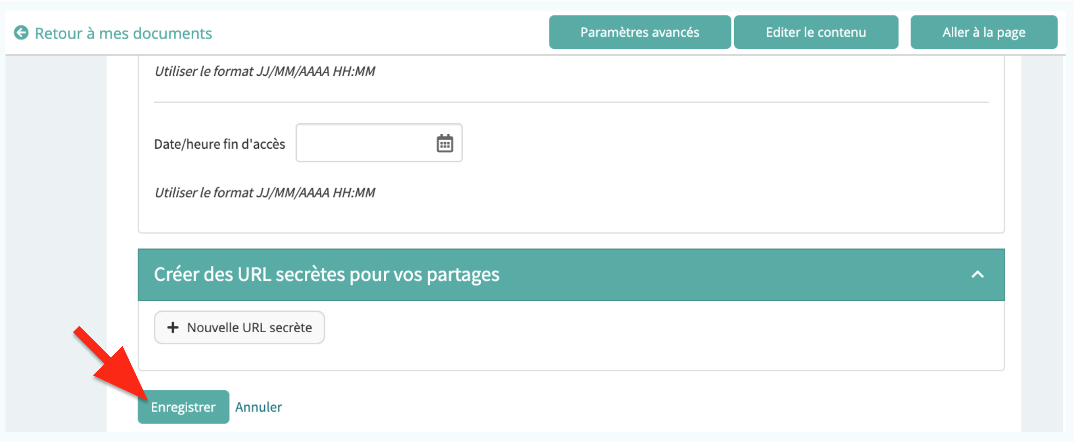 Enregistrez votre partage en cliquant sur « Enregistrer » en bas de la page.