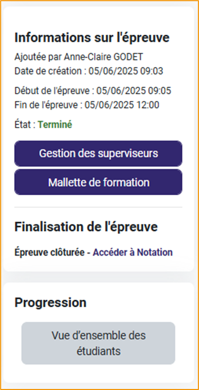 A la fin de l’épreuve (tiers-temps compris), cliquer sur « clôturer l’épreuve » pour basculer les résultats dans le module Notation