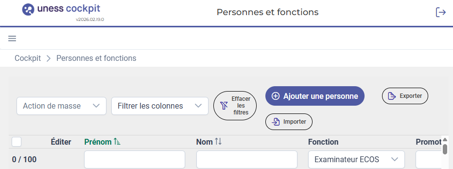 • filtrer les personnes sur la fonction "Examinateur ECOS"