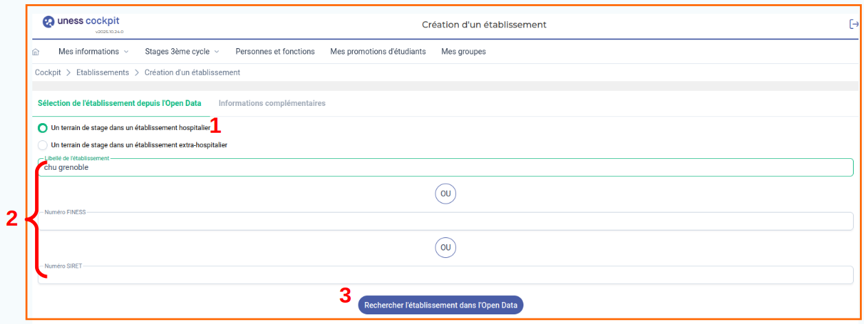 • Il est possible qu’une recherche d’établissement n’aboutisse pas et que pour diverses raison, l’établissement ne soit pas connu du Cockpit (1) ;